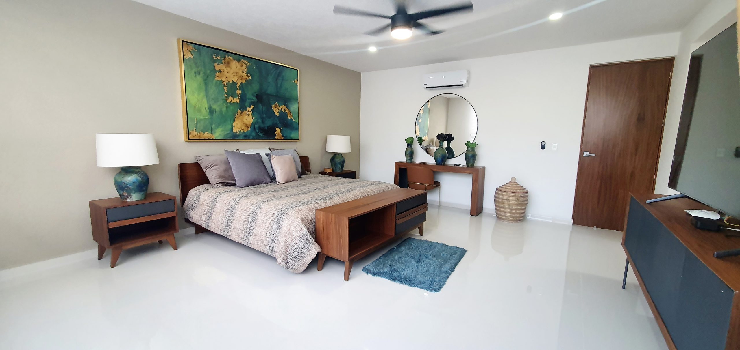 This modern 4-bedroom, 4-bathroom home in a fully secured residential neighborhood, offers 332.20 sq.m. of living space. Featuring a spacious living and dining area with panoramic views, a wide kitchen with a breakfast island, and a master suite with a walk-in closet, balcony, and full bathroom. The property also includes a private pool with a fountain, a TV room or studio, a garden terrace, and parking for two vehicles. Equipped with air conditioning, fans, stove, and more, this home blends comfort and luxury in a serene setting.
